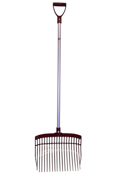 Die speziell geformten Zinken eignen sich perfekt für leichtes Aufnehmen von Dung und das Ausheben von nassen Stellen in der Einstreu.