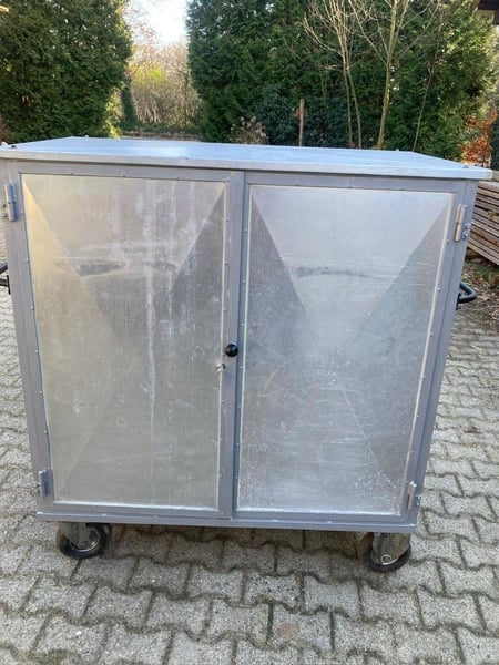 Mobiler Turnier- / Sattelschrank aus Aluminium Verkaufe im Auftrag einen hochwertigen und stabilen Turnierschrank aus Aluminium. Der Schrank wurde nur selten genutzt und befindet sich in gutem gebrauchten Zustand. Ausstattung: 2 ausziehbare Sattelhalter Trensenhalter 2 massive Regalböden 2 Deckenhalter außen Ösen für Seilwinde Luftbereifung 4 Rollen (davon 2 lenkbar und feststellbar) sehr stabil und langlebig Perfekt geeignet für Turniere oder Stall. Hinweis: Das Schloss müsste erneuert werden, da es nicht mehr richtig schließt. Maße: 1,54m breit, 1,44m hoch, 1,54m tief Nur Abholung in 49716 Meppen. Privatverkauf, daher keine Garantie oder Rücknahme. Preis VB – realistische Angebote willkommen.