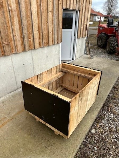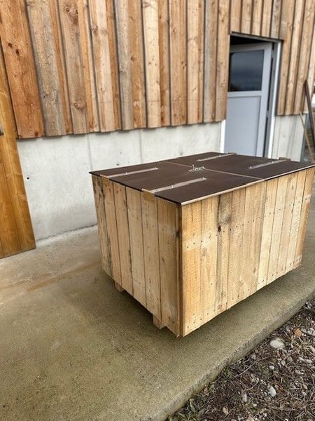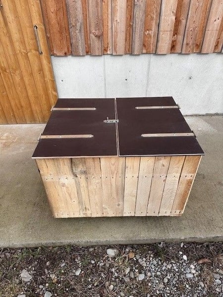 Verkaufe hier eine tolle Heuraufe für Selbstabholer. Länge: 114 cm Breite: 88 cm Höhe: 76 cm Mit Deckel oder ohne Deckel erhältlich Gerne bei Interesse melden.