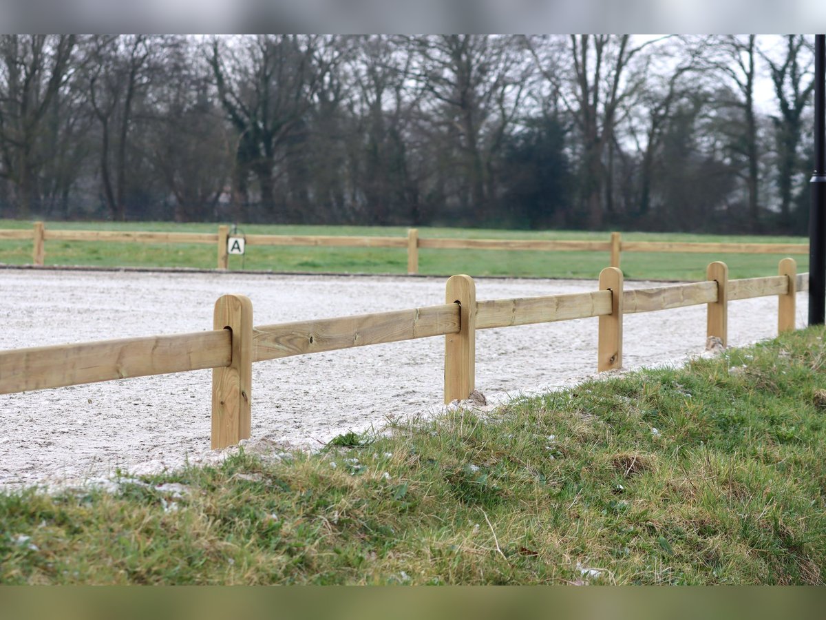 Hohe Qualität | Schnelle Lieferung dank großen Lagerbestand | Problemlos bis nach Deutschland geliefert! Schaffen Sie eine stabile und elegante Einfassung Ihrer Reitplatz oder Ihres Dressurvierecks mit diesem permanenten Reitplatzzaun Holz. Das Dressurviereck besteht aus PEFC-zertifiziertem nordeuropäischem Kiefernholz, das mit Tanalith-E imprägniert wurde – für eine längere Lebensdauer und eine natürliche Optik. Die Sattelform der Pfosten verleiht der Umzäunung ein besonders edles Erscheinungsbild. Die permanente Dressurplatz sorgt für eine hochwertige und gepflegte Optik – und bleibt bei jeder Witterung stabil stehen. Permanentes Reitplatzzaun Holz • Ab Lager lieferbar • Stabile Ausführung • Komplett mit Tanalith-E imprägniert • Montage auf Holz-/Betonbalken (Füße gegen Aufpreis erhältlich) oder im Boden möglich • Pfosten: 80 x 10 x 10 cm | Zaunlatten 250 x 2,8 x 12 cm | Pfostenabstand: 2,5 Meter Preis Dressurplatz inkl. 21% MwSt. 20 x 40 Meter | Von € 815,- jetzt für € 750,- 20 x 60 Meter | Von € 1.095,- jetzt für € 1.000,- SERVICE Abholung und Versand sind möglich. Auf Wunsch kann das Reitplatzzaun Holz auch durch unser Fachteam montiert werden. Kontaktieren Sie uns für ein unverbindliches Angebot oder persönliche Beratung! Besuchen Sie auch unsere Website www.rutjespferdeboxen.de – dort finden Sie eine große Auswahl an Dressurvierecken und passendem Zubehör! KONTAKT Rutjes Pferdeboxen und Zäune Entersestraat 12 7472 AC Goor (ca. 30 km hinter der deutschen Grenze) Niederlande Tel: 0031/547/381 938 Rutjes Pferdeboxen und Zäune ist seit über 20 Jahren der renommierte Lieferant für Pferdeställe und Weidezäune. Dressurviereck | Reitplatz Zaun | Dressurplatz | Dressurviereck 20 x 60 | Reitplatzzaun Kunststoff | 20 x 40 Dressurviereck | Dressurviereck Kunststoff | Buchstaben für Dressurviereck