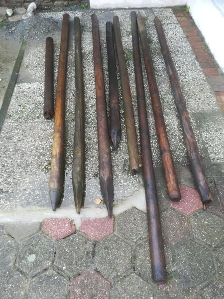 Verkaufe 9 Holzpfähle/Weidepfähle. Unterschiedliche Längen: 5 x ca. 2,48 m, Durchmesser 6-7cm, 1 x ca. 2,25 m, 1 x 1,80 m, 1 x ca. 1,15 mm, 1 x 3 m halbrunde Zaunlatte. Gebraucht. Nur zusammen abzugeben. Für alles zusammen 15,- Euro. Nur Abholung. Keine Gewährleistung, keine Garantie, keine Rücknahme und keine Haftung.