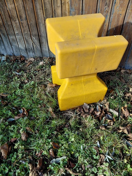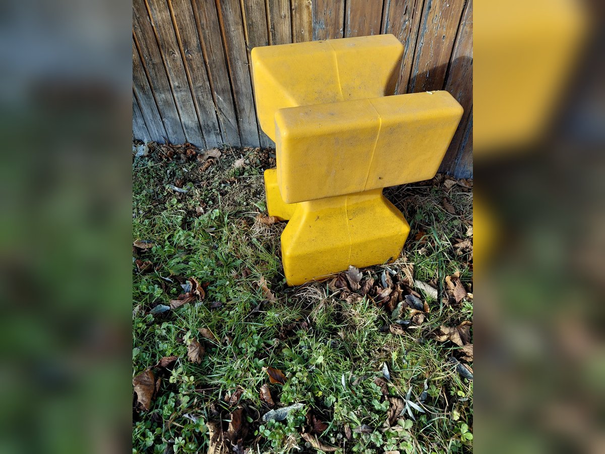 8 Blocks für Stangen, Bodenarbeit, Abgrenzung etc. zu verkaufen Maße: 57/35 cm Farben: gelb, blau, rot Nur Abholung!