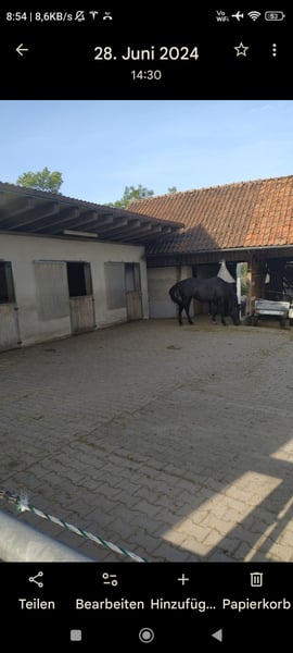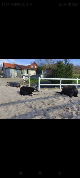 In unserem Privatstall sind Boxen frei geworden. Jede Box führt in ein gemeinsames, befestigtes Paddock mit Unterständen, Sandauslauf und auch direkt zu den Koppeln. Die Weide wird in der Saison täglich portioniert, sodass die Pferde sich viel bewegen können, aber keine Rehegefahr besteht. Heu gibt es in dieser Zeit morgens und abends, damit der Rauhfutterbedarf abgedeckt ist. Im Winter wird mindestens 5 x Heu gefüttert, über die Nacht mit Heunetz in der Box. Beleuchteter Sand-Reitplatz mit Vlies/ Engelshaar 25x40m, Toilette, Reiterstübchen, Heizraum und Sattelkammer vorhanden. Mithilfe ist erwünscht und individuell absprechbar. Gerne auch Vollpension. Bei Fragen gerne melden.
