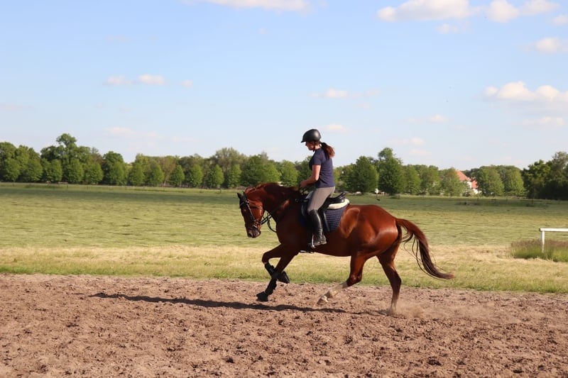Wir bieten auf unserem kleinen, familären Hof Berittplätze an. Ich bin Geraldine, 29 Jahre alt, gelernte Pferdewirtin in den Fachrichtungen Haltung und Service (Hauptgestüt Graditz) sowie Klassische Reitausbildung (Brandenburgisches Haupt-und Landgestüt Neustadt(Dosse)). Im Anschluss an meine Ausbildung war ich 10 Jahre am Haupt-und Landgestüt Neustadt(Dosse) tätig.In dieser Zeit sammelte ich umfassende praktische Erfahrung in der Aufzucht und Vorbereitung von Hengsten auf Körungen sowie von Stuten auf Leistungsprüfungen und Staatsprämienschauen. Mein Schwerpunkt liegt in der Dressur, dennoch lege ich großen Wert auf eine vielseitige Ausbildung: Dressurarbeit,Gelände,Longe,Stangenarbeit und kleinere Sprünge gehören selbstverständlich dazu. Jedes Pferd wird bei mir so behandelt, als wäre es mein eigenes - mit Geduld,Klarheit und einer vertrauensvollen Basis zwischen Pferd und Reiter. Egal ob Freizeit-oder Sportpferd - ich bilde nach klassischen,traditionellen Grundsätzen aus. Auch Ponys (ab 1,40m) sind bei mir herzlich willkomen. Unser Hof bietet: -Reitplatz 25x45m -große Boxen mt Fressgittern,sodass 24/7 Heu zur Verfügung steht -wunderschönes Ausreitgelände -großzügige Ausläufe und Koppeln Gerne beantworte ich weitere Fragen & freue mich Sie und Ihr Pferd kennezulernen!