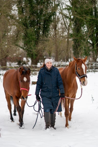 Mein Name ist Mara Kempken, ich bin OsteoDressage Trainerin, Osteopathin nach Barbara Welter-Böller und Huforthopädin nach Jochen Biernat. Auf meiner Anlage biete ich individuelle Ausbildung von Pferden aller Rassen an: Anreiten, Problemlösung oder Reha nach einer Erkrankung oder Verletzung. Ich lege viel Wert auf einen persönlichen, liebevollen Umgang mit den Pferden. Dein Pferd ist keine Zahl im großen Berittstall, sondern wird genauso wertgeschätzt und behandelt wie meine eigenen Pferde. Maximal zwei Berittpferde leben das ganze Jahr in „Mini Offenställen“ - ca. 100qm Paddock mit Unterstand pro Pferd. Zusätzlich gibt es täglich Zeit auf der Weide oder grasfreien Flächen im Winter. Heu ad libitum ist genauso möglich wie 4x täglich Heu gemischt mit Futterstroh oder gewässertes Heu. Das Training der Pferde gestalte ich möglichst vielfältig am Boden, unterm Reiter, auf dem Platz und im Gelände. Ich bilde entspannte und zuverlässige Pferde aus, die Freude an der gemeinsamen Bewegung haben und sich im Alltag gut händeln lassen. Ein entspanntes Pferd ist kein Glück, sondern das Ergebnis vielseitiger Ausbildung. Im Preis inklusive (1050€ im 1. Monat, danach 900€ pro Monat): •5 Trainingseinheiten/Woche •Osteopathische Behandlung zu Beginn des Aufenthalts und ggf. Folgebehandlungen •Huforthopädische Barhufbearbeitung auf Wunsch •Unterricht für dich als Besitzerin 1x wöchentlich Vollpension: •Unterbringung im großzügigen Paddock •Heu nach individuellen Bedürfnissen •Bis zu 2x täglich Kraftfuttergabe (Kraftfutter muss selbst mitgebracht werden) •jeglicher Service rund um Decken, Fliegenmaske, Medikamente etc. •Misten des Paddocks und Unterstand 2x täglich Ich freue mich auf dich und dein Pferd! Mehr Infos findest du unter www.mara-freudemitpferden.com