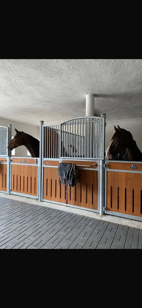 We offer partial and full training, with lessons (if desired). Included is: *Feeding hay 3 times a day *Feeding concentrates 3 times a day *Feeding mash daily *Administration of medications *Daily turnout in pasture or paddock (individually also twice a day) *Training (full or partial training) *Lessons as requested *Competition preparation *Sale of the horse *Scheduling of veterinarian and farrier visits *Stable or paddock box All horses are turned out daily in pastures or paddocks, both summer and winter.