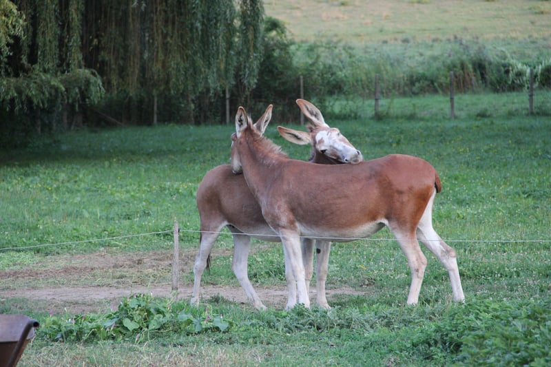 Aufgrund der Verkleinerung meines Tierbestands biete ich die beiden auf dem Foto abgebildeten Esel zum Verkauf an: Mutter (9 Jahre) und Tochter (2 Jahre). Beide sind kräftig, gesund und gutmütig. Ihre Fellfarbe ist äußerst selten: rot. Herkunftsnachweis und Pferdepass sind vorhanden.