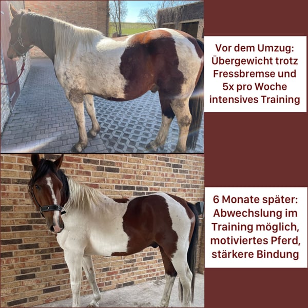 Mein Pferd sucht einen oder mehrere Spielkumpel. Wir stehen in Schöneiche bei Zossen in einem tollen Aktivstall/Paddocktrail. Dieser ist geeignet für Rehe- und EMS-Pferde oder einfach nur leitfuttrige Pferde. Dieser Stall hat viel zu bieten: - rationierte Fütterung oder 24/7 Heu aus engmaschigen Netzen - Weide in Eigenregie - 2 Reitplätze - Roundpen - Beleuchtung - Putz- und Waschplatz - geniales Ausreitgelände direkt am Hof - Toilette, Sattelkammer, Futterkammer - Stellplatz für Pferdehänger - nette und hilfsbereite Stallgemeinschaft Das Misten der Trails wird von den Einstellern organisiert. Bei Fragen und Besichtigungswünschen wendet euch bitte an die Stallbetreiberin Anja Langhammer 01787177562. Ihr findet auch ihre Anzeige vom Hof bei Kleinanzeigen unter https://www.kleinanzeigen.de/s-anzeige/offenstall-paddock-trail-rationierte-fuetterung/1975637351-313-17795?utm_source=whatsapp&utm_campaign=socialbuttons&utm_medium=social&utm_content=app_ios