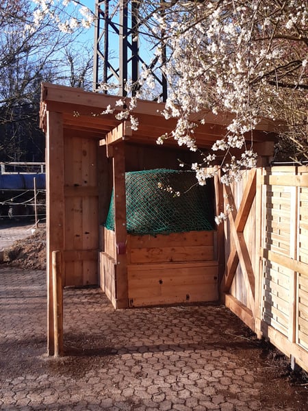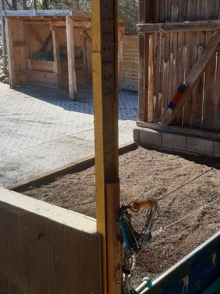 Offenstallabteil zur Haltung in Eigenregie für vier Pferde ab Mitte/Ende August frei! Wir sind ein kleiner Freizeitstall mit einem kleinen Boxenstall und zwei Offenställen, die in mehrere Abteile unterteilt sind. Die Versorgung wie Füttern und Misten organisiert sich jedes Abteil selbst - das Heu bekommen wir vom Bauern, der auch den Mist entsorgt und die Wassertanks befüllt. Einen Wasser-/Stromanschluss gibt es nur am Boxenstall. Ab Mitte/Ende August ist folgendes Abteil zu vermieten (220,- je Grosspferd/200,- je Pony): - unterer Offenstall - grosse, portionierbare Sommer-/Winterweide mit gesandetem Zugang (wurde bisher täglich abgemistet/früher Mischbeweidung mit Rindern) - 35 qm Liegeflaeche (derzeit zur Haelfte mit Waldbodeneinstreu, die von der jetzigen Einstellerin uebernommen werden kann) - ca. 200 qm befestigter Paddock (Pflaster/Sand) - Rundballenraufe aus Holz mit Unterstellmoeglichkeit im Paddock (2 Fressplaetze) und weitere Heuraufe aus Holz ueberdacht (weitere 2 Fressplaetze) ebenfalls im Paddock - Rundballenraufe aus Metall auf der Koppel - IBC-Container bzw. Wasserfass Wir haben einen Reitplatz mit Sand-Spaene-Boden (15 x 25 m) und ein ordentliches Ausreitgelaende. Wir sind eine nette Stallgemeinschaft, die sich nach Absprache auch mal gegenseitig hilft, gelegentlich miteinander grillt und sich bemueht die Bedürfnisse verschiedenster Pferde im Selbstversorgerstall zu managen. Bitte am Besten ein SMS schreiben oder anrufen (nachmittags/abends), da ich nur selten am PC bei meinen Mails bin ….. lieben Dank!