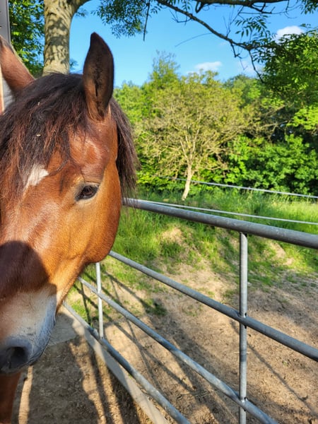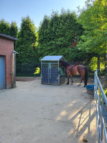 Unser Pferd (ein lieber Wallach) sucht Gesellschaft. Es ist ein großzügiger Offenstall ausgelegt mit Gummimatten und HIT Pferdebetten (kein Einstreu) vorhanden, ein befestigter Paddock (kein Matsch), ein Paddock mit Lehmboden, sowie Weidefläche. Strom/Licht/Tränke und eine eigene Sattelkammer für den /die Einsteller/in gibt es auch. Da es nur 2 (ggf. 3) Pferde sind, muss der neue Mitbewohner grundsätzlich in der Lage sein bis zu 2 Std. allein zu bleiben. Je nach Größe der Pferde/Ponys wäre der Stall auch für 3 Bewohner geeignet. Der Platz wäre auch für einen Rentner gut geeignet, dessen Besitzer/in nicht jeden Tag oder für jedes ein-/ausdecken kommen kann. Wallach oder Stute ist beides möglich. Die Beteiligung an der Stallarbeit (v.a. abäppeln) ist erwünscht. Das Rein-/Rausstellen und ggf. eine Fütterung pro Tag kann ich übernehmen. Es gibt ein schönes Ausreitgelände und ein Reitplatz ist in 10 min zu erreichen. Wir freuen uns auf Nachrichten oder Kennenlernbesuch.