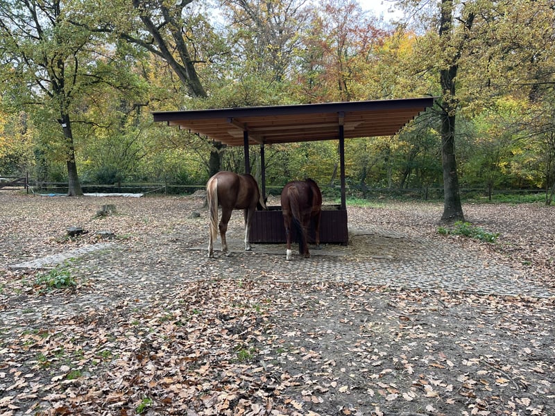 Offenstall Offenstall Offenstallplatz Aufzuchtplatz Paddock Hallo! Suche nettes Einstellpferd & Besitzer für gepflegten Offenstall in 53347 Alfter ab ca. Mitte Oktober. Was wir bieten: -über 2000qm Winterpaddock unter Bäumen (kaum Matsch) -befestigter & beleuchteter großer Offenstall -beleuchtete & überdachte große neue Heuraufe drumherum befestigt, sodass die Pferde trocken stehen -befestigter & beleuchteter Putz- & Waschplatz mit Dusche -überdachter & trockener Stellplatz für den Sattelschrank -beleuchteter „Bewegungsplatz“ (Reitplatz ab 2026) & Roundpen (16m, Allwetterfest) -24/7 im Winter Heu von guter Qualität -24/7 im Sommer gepflegte Weiden mit Baumbestand -2x tägliches Misten im Winter -im Sommer Mithilfe Nachpflege der Weiden -Mineral- & Salzlecksteine zur freien Verfügung -wunderschönes Ausreitgebiet direkt vor der Tür (Wald & Felder) -Strom & fließend Wasser -sauberes Parken -Hallennutzung & neuer Reitplatz in 15 Min Hängerfahrt gegen geringe Gebühr -Hallennutzung fußläufig (7 Min) gegen Gebühr -Reitvereingelände in 30 Reitminuten gegen Mitgliedschaft Herde besteht aus zwei Stuten und Wallach. Serviceleistungen: Privater Offenstall daher Aufteilung der Versorgung. Bis April 2026 in „Selbstversorgung“ (Heu-Dienste teilen wir uns) auf eigenem Paddock an befestiger & überdachter Heuraufe, misten musst Du selber (täglich!). Preis in Selbstversorgung 150,-€ mtl. zzgl. Heu & Wasser. Offenstall befindet sich in Alfter (Ort) 5 Autominuten vom Ortskern. Was ihr mitbringt/ notwendige Voraussetzungen: -Wallach oder Stute bis max. 15 Jahre -gerne auch Jungstute 1-2jährig (für meine kleine) -min. 1,45m bis max. 1,70m Stockmaß -Offenstallgewöhnt (nehmen keine Boxenpferde!) -Barhufer oder max. vorne Beschlagen -herdenverträglich -Entwurmung nach ZSE -Du als Besitzer kommst aus der Nähe und hast max. 20 Min Anfahrtsweg (wegen Selbstversorgung bzw. Dienstaufteilung) Bitte nicht anfragen, wenn keines der oben genannten Voraussetzungen gegeben sind und ihr nur was kurzfristig sucht! Wir freuen uns über Vorstellung eurerseits, bitte mit Berücksichtigung der notwendigen Voraussetzungen!! Bei Fragen gerne einfach melden! :)