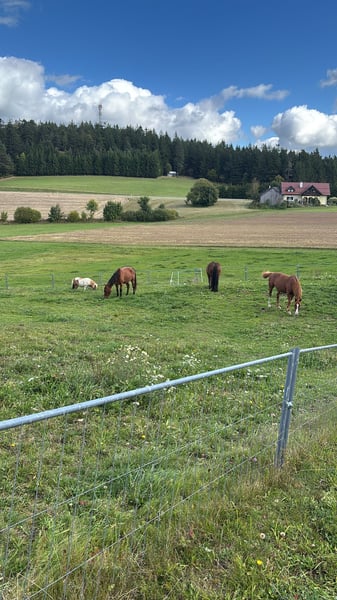 Du suchst einen kleinen familiären Offenstall im Mühlviertel, dann bist du bei uns genau richtig.(Wallach oder verträglicher Hengst) - 24/7 Bio-Heu (Heunetz und lose) - 2 Liegepätze (Stroh, Waldboden) - Ganzjährig Koppel - Beheizte Sattelkammer - WC - Kugeltränke - Direkte Anbindung ans Reitwegenetz - Tägliches Ausmisten - Höhenlage 1026m - Tägliche zusätzliche Fütterung, Deckenservice, Medikamentengabe Fliegenmaskenservice für Aufpreis möglich 4252 Liebenau Biohof Glashütter 200€ monatlich