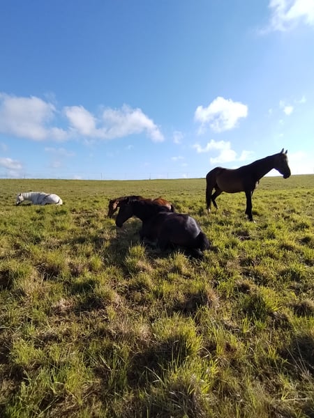 Sie suchen ein neues zu Hause für ihr Pferd? Wohin mit dem Sportpferd oder der Zuchtstute nach Karriereende? Ganz einfach: zu uns. Bei uns kann Ihr Pferd ganz Pferd sein und den ganzen Tag Pferdesachen machen. Als Mitglied einer gemischten Herde hat Ihr Pferd rund um die Uhr Zugang zu Artgenossen, Wasser, Heu/Gras und Mineralien. Die Herde steht ganzjährig auf 7 ha großen Weideflächen mit mehreren Weidezelten. Das Wohlergehen der Pferde wird täglich mehrmals kontrolliert. Hufschmied, Tierarzt oder weitere Serviceleistungen sind nach Absprache möglich. Auf dem Gelände ist ein großer abgegrenzter Platz zum Reiten oder sonstigem Bewegen der Pferde verfügbar. Ausritte ins Gelände sind möglich. In der Nähe (ca. 800 m) befindet sich eine große Reithalle sowie ein Dressurplatz, ein Springplatz und eine Geländestrecke (gesonderte Absprachen erforderlich).