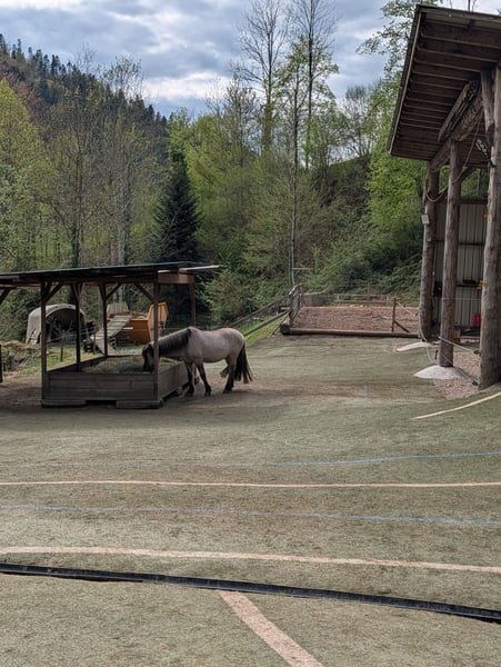 Stallplatz für 1-2 Pferde/Pony in schönem Offenstall mit Trail in Wolfach frei. Wir sind eine Stallgemeinschaft bei uns wohnen 2 Isländer Wallache, 1 Quaterhorse Wallach und 1 Haflinger Stute. Direkt ab Stall gibt es ein sehr schönes Ausreitgelände mit vielen Rundwegen. Auch auf der anderen Waldseite die über die Straße führt ist es herrlich zum Reiten. Am Stall wohnen noch Ziegen und Hühner. Wir haben eine Heuraufe aus der es 24/7 Heu gibt, zudem dürfen die Pferde ab ca Mai bis Ca November auf die Koppel. Unsere Pferde sind alle Barhuf. Vorhanden ist der Stall, eine Futterkammer, eine Sattelkammer im Wohnwagen, eine Kratzbürste, frisches Trinkwasser an der Trinkstelle und im Sommer eine Pferdedusche zudem noch ein Bewegungsplatz. Wir sind eine Stallgemeinschaft die Miete beläuft sich auf 90€/Monat alle anderen Kosten wie Heu, Einstreu, Mistentsorgung usw wird durch die Anzahl an Pferden geteilt. Dazu gerne in einem persönlichen Gespräch mehr. Unsre Stallgemeinschaft die sehr viel Wert auf Gemeinschaft legt, auf Ehrlichkeit, Zuverlässigkeit und auch Ordnung. Das Pferdewohl sollte auch bei dir an erster Stelle stehen. Bei Interesse gerne schreiben ich freue mich über Nachrichten