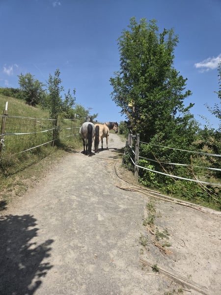 In unserer kleinen Herde wird ein Offenstallplatz für einen (Pony-)Wallach (max. 1,60) ab ca. Mai 2026 frei. Wir sind eine kleine familiäre Offenstallgemeinschaft mit einem Fjordwallach und einer Zwergeselstute. Unser Offenstall ist umgeben von einem schönen Ausreitgelände (Wald/Feld) und hat auch einen dazugehörigen Reitplatz der innerhalb von 5 Minuten erreicht werden kann. Ggfs. ist es möglich sich im näheren Umkreis in eine Reithalle einzumieten. Fließendes Wasser, Strom und zwei größere Koppeln sind vorhanden, die direkt mit dem Auslauf verbunden sind. Außerdem haben wir eine zeitgesteuerte Heuraufe, die eine Fütterung ohne längere Pausen gewährleistet. Der Stalldienst findet 1x täglich statt und ist aufgeteilt. Für das neue Pferd würde er 3x in der Woche anfallen und beinhaltet das Misten und Fegen des Stalls, sowie das Absammeln des Paddocks und die Mineralfütterung.