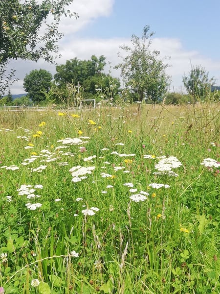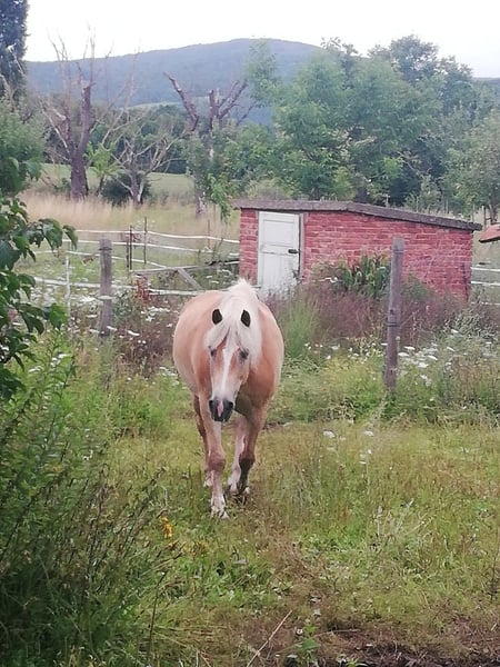 Wir sind eine kleine Stallgemeinschaft mit einem sehr lieben 17 Jahre alten Haflinger-Araber-Mix. Die Pferde stehen direkt am Haus, im Sommer wechseln wir die Wiese, im Winter gibt es Heu ad libidum. Alles ist ganz entspannt: Zum Stalldienst gehören Abäppeln, Wasser auffüllen, Abstecken, Zustecken und die gemeinsame Vorbereitung der Sommerwiese. Da es sich um ökologisch bewirtschaftete Streuobstwiesen handelt, ist es wichtig, dass Dein Pferd keine Böume anfrisst. Es gibt eine Sattelkammer und wunderschönes Reitgelände.