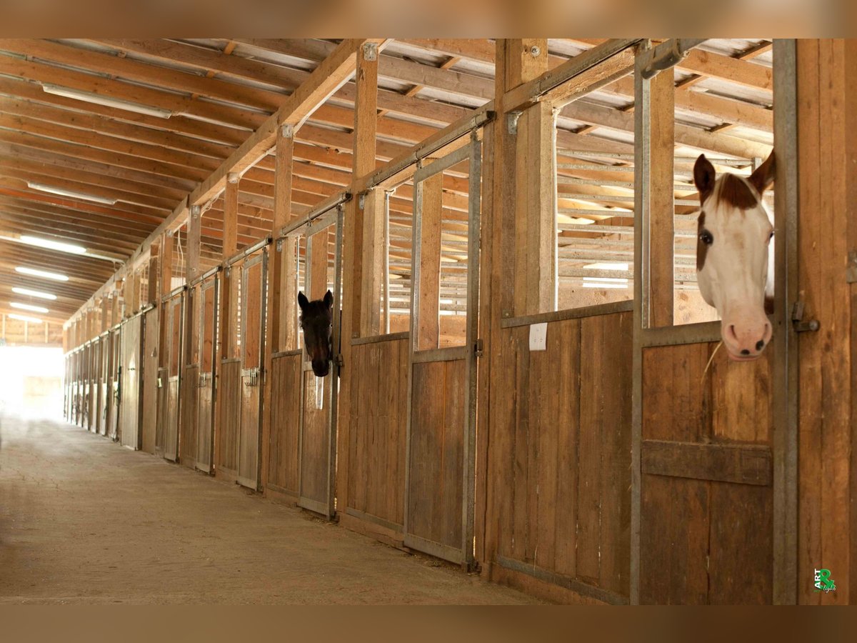 Für jedes Pferd was passendes. Paddockboxen, Aussenboxen, Innenboxen, großer Reitplatz (100x50), 2 Reithallen 40x20, beide mit Otto Reitsportböden ausgestattet. Eine mit super Allroundboden und eine mit genialem Reiningboden. AQUA-Trainer, Sole-Kammer, Teich für Pferde, Solarium, Longierzirkel (Roundpan), Gastboxen für Kurse mit eigenen Sattelkammern, laufend Seminare, Turniere, Abzeichen, Fortbildungen, Vollpension, 3 x tägl. bedarfsgemäße Fütterung, täglich Koppelgang, Deckenservice auf Wunsch, Reitunterricht klassisch und western, Bodenarbeit, Beritt sowie Osteopathie, Chiropraktik, manuelle Therapie am Pferd mit Trainingsplan. Anerkannter FEI Therapeut. ReHa Anwendungen und Urlaubsvertretung sind ebenso im Angebot. Videoüberwachung mit eigenem Zugang möglich. Weitere Boxen verfügbar: Innenboxen: 445 €