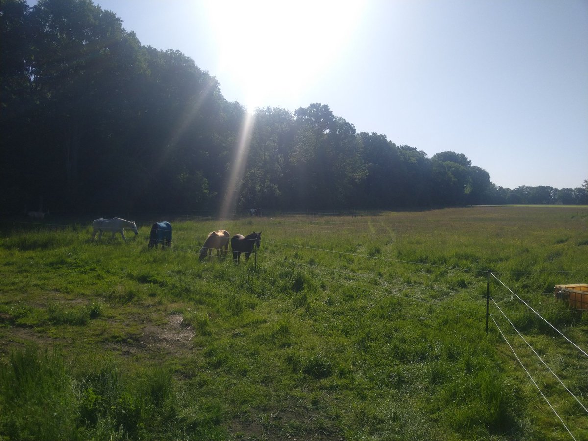 Wir bieten ab 01.02. einen Platz in unseren großzügigen, hellen und gut belüfteten Paddockboxen (28 qm innen wie außen) an. Im Winter stehen sie tagsüber auf Sandkoppeln und im Sommer auf unseren 6,5 ha großen Weideflächen. Das Heu ist von unseren Wiesen (ohne Kunstdünger). Im laufenden Jahr stehen noch ein paar Umbaumaßnahmen an,das eine bedarfsgerechtere Fütterung gewährleistet ist, ganz zum Wohle der Pferde. Für das Training habt ihr zur Verfügung: * Round Pen (beleuchtet) * Führanlage (beleuchtet) * Reitplatz 20x40, Nordsand (beleuchtet) * Stangenplatz Für das Wohlbefinden und zur Gesunderhaltung: * Solekammer * Solarium * Bemer Horse Set (Magnetfeldtherapie) * Untersuchungsstand * Kooperation mit unserem Tierheilpraktiker * keine Stalldienste Wir freuen uns euch und eure Pferde/Ponies bei uns begrüßen zu dürfen.
