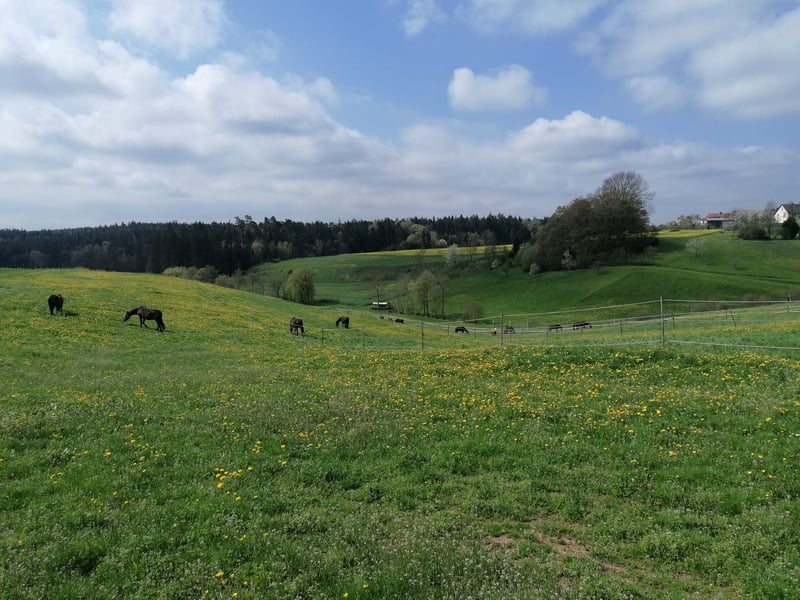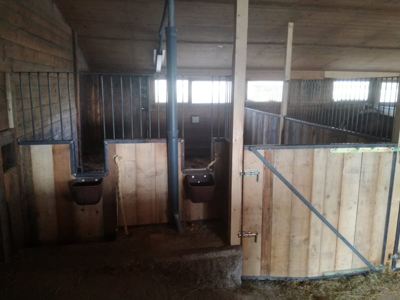 Wir bieten eine großzügige und gepflegte Pferdeanlage in ruhiger, idyllischer Lage in Schönbronn bei Wört mit einem umfangreichen Leistungsangebot. Unsere Pferde werden in Vollpension betreut – Füttern, Misten und täglicher Weidegang sind inklusive. Heu, Stroh und Hafer stammen aus eigenem Betrieb und sind im Preis enthalten. Mineralfutter, spezielles Kraftfutter etc. werden vom Besitzer gestellt. Innenboxen • Große Einzelboxen • Besonders geeignet für Rentnerpferde, Zuchtstuten, Sportpferde • Heuraufen für staubarme Futteraufnahme und Tränkebecken • Bei geeigneter Witterung täglicher Weidegang. • In der nassen Jahreszeit: befestigter Paddockplatz pro Box Paddockboxen • Große Boxen mit direktem Zugang zum eigenen Paddock • Heuraufen für staubarme Futteraufnahme und Tränkebecken • Waagrecht geteilte Paddocktüren • Optionaler Windschutzvorhang zur Vermeidung von Zugluft • Weidegang bei geeigneter Witterung Gruppenboxen mit Paddockzugang Sehr großzügige Boxen mit über 20 m2 mit direktem Paddockzugang • Ideal für Fohlen- Jungpferdeaufzucht, Pony- oder Isländergruppen sowie für 2-3 gut harmonisierende Pferde • Waagrecht geteilte Paddocktüren • Optionaler Windschutzvorhang • Wahlweise Tiefstreubox mit Häckselstroh für eine besonders weiche Liegefläche • Weidegang bei geeigneter Witterung Optional: Pacht eines Stalltrakts • Mehrere Boxen zu rabattierter Miete • Ideal für den Einstieg in die Selbstständigkeit • Mitgestaltungsmöglichkeiten, Mitentscheidungen, Futterdienste u. v. m. • Wir sind offen für Ihre individuellen Vorstellungen Ausstattung der Anlage • Großzügige Stallgasse • Pferdewaschplatz • Untersuchungsstand für Stuten • Heu, Stroh, und Häckselstroh aus eigener Produktion in Top-Qualität • Weitläufige Koppeln mit über 2 Hektar Fläche direkt am Stall • Reitplatz mit hochwertigem, nahezu ganzjährig nutzbarem Boden inkl. Flutlichtanlage und Hindernissen • Reithalle ca. 1 km entfernt, bequem über Feldwege erreichbar • Wunderschönes, ruhiges Ausreitgelände direkt ab Stall Angebote für die Besitzer • Waschraum mit Spülmaschine und Waschmaschine • Toilette • Beheiztes Reiterstübchen • Sattelkammer