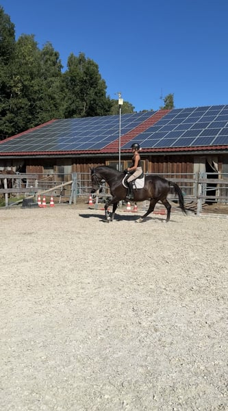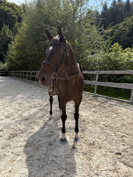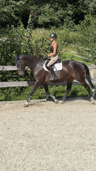 Zum Verkauf steht diese 11-jährige dunkelbraune Stute namens Amazing Amy. Amy ist im Jahr 2015 geboren, etwa 168cm groß und stammt als Oldenburger Springpferd von Armand xx x Stern ab. Da sie für den Vielseitigkeitssport gezogen wurde, besitzt sie einen hohen Vollblutanteil, welcher bei der Springarbeit zum Vorschein kommt. Sie ist fein zu reiten und kennt sowohl das Gelände als auch Vielseitigkeitshindernisse. Aufgrund ihrer Ehrlichkeit ist sie jedoch kein Anfängerpferd. Da sie im Fohlenalter von einem anderen Pferd an der Hinterhand verletzt wurde, fällt es ihr schwer Last aufzunehmen. Steht sie jedoch voll im Training, hat sie keinerlei Einschränkungen und kann deshalb auch problemlos gesprungen werden. Diese Stute steht derzeit in 94571 Schaufling. Platz vor Preis, kein Notverkauf. Dieses Pferd wird im Auftrag verkauft. Bei Fragen oder ernsthaftem Interesse gerne unter folgender Nummer melden: 016090632225