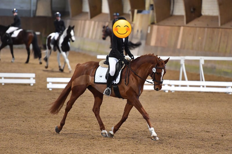 C Trentina, sire C-Trenton Z / dam's sire Landor S is a stylish Oldenburg chestnut mare, born in 2014. She has a height of 164 cm and shows great potential in show jumping. Overall, she is very versatile and talented. She impresses with her gentle nature and willingness to please. She has competition experience up to 115 cm (training up to 135 cm), is loading-friendly, farrier-friendly, and can go both alone and with company in the terrain. She has no bad habits such as rushing, bucking, or rearing, but is quite spirited and requires a confident rider who can handle a sensitive horse, as she can be somewhat spooky. She has no health issues and has never suffered from injuries with lasting effects. She has been regularly treated by osteopaths and chiropractors and has also undergone regular magnetic field therapy. The mare is prone to head-shaking and exhibits a strong toe-in gait in the hind legs, which causes her hock to rotate outward when walking. However, this does not cause her any health problems, limit her or require special treatment. Due to these two aspects, the price is negotiable.