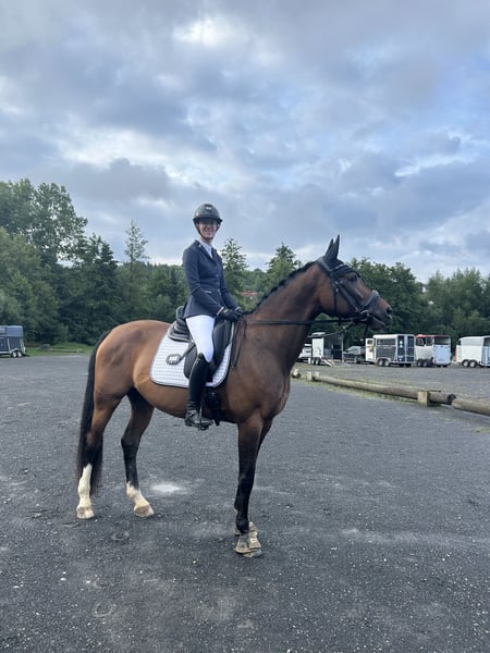 Zum Verkauf steht meine 12 Jährige Oldenburger Stute Coco Chanel. Sie ist seit ca. 5 Jahren an meiner Seite und seit ca. 2,5 Jahren in meinem Besitz. Sie ist im Alltag sowie beim Schmied total unkompliziert. Auch beim verladen und in fremder Umgebung ist sie immer entspannt und unkompliziert. Im Umgang ist sie auch mit Kindern lieb und zuverlässig. Beim ausreiten, egal ob alleine oder in Gruppen, ist sie mutig und unerschrocken, auch bei anderen Pferden, Hunden oder landwirtschaftlichen Maschinen bleibt sie gelassen. Sie ist steht motiviert und arbeitsfreudig. Egal ob in der Dressur Arbeit oder im Springen. Sie ist sehr vorsichtig am Sprung und hat eine gute Grundqualität. Bei höheren Sprüngen braucht sie etwas Sicherheit, daher wäre ein erfahrener Reiter in diesen Klassen von Vorteil. In der letzten Saison waren wir viel auf Geländetraining, was ihr besonders viel Freude macht. In der Vielseitigkeit sind wir erfolgreich in der Klasse E gestartet, in Springen bis zur Klasse A. Im Training sind wir in der Vielseitigkeit auf einem guten A Nivea. Sie kennt Offenstallhaltung, Box mit ganztägigem Weidegang sowie 24/7 Weide im Sommer. Sie ist sehr verträglich in der Herde, Tritt und Beißt nicht! Ich könnte sie mir auch gut als Zuchtstute vorstellen, sie hatte jedoch noch kein Fohlen. Es ist kein Notverkauf und wird nur in ein 5 Sterne Zuhause abgegeben.