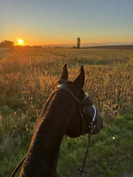 Dinzi es una yegua Oldenburgo de 13 años que destaca por su carácter cariñoso y tranquilo. Le encanta salir a pasear (también sola) y saltar, y disfruta mucho de la versatilidad. Aunque la doma no es su disciplina principal, domina algunas lecciones de nivel L. Dinzi tiene un temperamento sereno y se lleva bien con los niños. Desafortunadamente, Dinzi perdió su ojo derecho el año pasado debido a una lesión ocular, pero no lo muestra en absoluto. Se desenvuelve muy bien incluso en el salto. Ahora busca una nueva tarea, ya que no puedo dedicarle el tiempo que necesita debido a mis estudios universitarios. Debido a una alergia al trigo, Dinzi no puede estar en paja. Ya sea para aprender a montar, salir a pasear o iniciarse en el deporte de competición, está dispuesta a divertirse y es adecuada para niños y principiantes :) La tengo desde hace poco y, lamentablemente, debo cederla debido a limitaciones de salud de mi parte. Si estás interesado, no dudes en llamar o enviar un WhatsApp :)