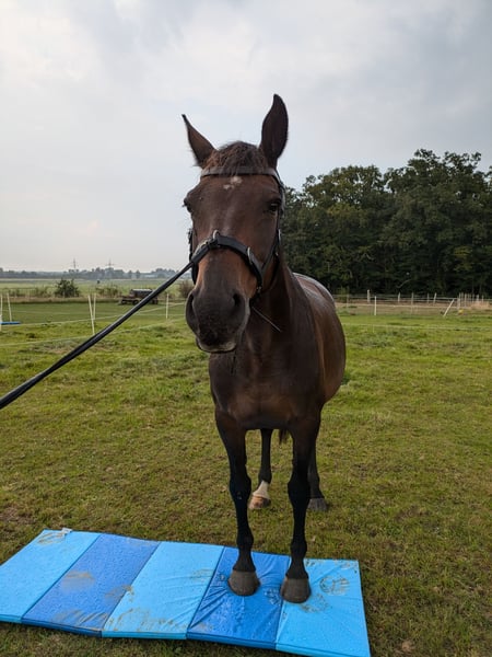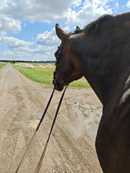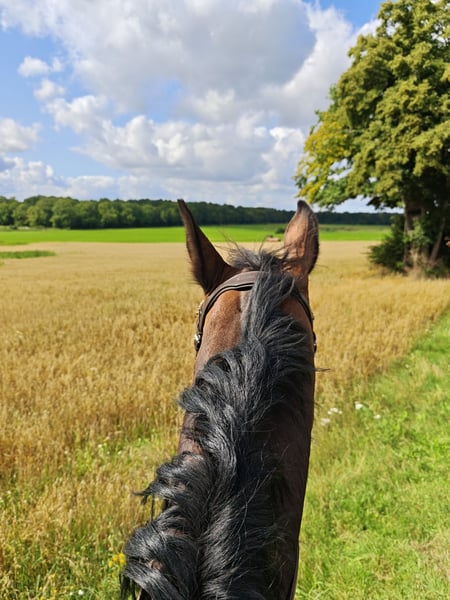 Oldenburger Stute – Verlasspferd im Gelände mit Herz aus Gold Unsere 14-jährige Stute (ca. 1,67 m, Rasse: Oldenburger Springpferd) sucht ein neues Zuhause, in dem sie als treue Freizeitpartnerin geschätzt wird. Sie ist ein echtes Verlasspferd im Gelände: * nervenstark und absolut kopfklar, egal ob allein oder in der Gruppe * Autos, Traktoren, Busse oder Landstraßen (sogar bei Dunkelheit) meistert sie souverän * frisches Go und stets kontrollierbar Auf dem Platz zeigt sie sich leichtrittig und fein an der Hand. Für leichte Dressurarbeit ist sie ebenso geeignet wie für entspannte Ausritte durchs Gelände. Im Umgang ist sie ein Schatz: sie liebt es, geputzt und betüddelt zu werden, lässt sich problemlos verladen und fährt sowohl alleine als auch mit anderen Pferden brav im Anhänger. Beim Tierarzt und im Alltag zeigt sie sich unkompliziert und menschenbezogen. Sie lässt sich sowohl von Jugendlichen, als auch Erwachsenen reiten und hat 3 bequeme Grundgangarten und ist kopfklar. Sie kennt Bodenarbeit, Longieren mit Ausbindern, longieren am Kappzaum ohne Ausbinder und auch klassische Handarbeit. Dabei ist die stets sehr gut händelbar, aufmerksam und sensibel. Aufgrund ihrer Sensibilität ist sie kein reines Anfängerpferd. Aktuell lebt sie im Offenstall mit 24/7 Heu im Winter und 24/7 Weide im Sommer, kennt aber auch Boxenhaltung. Sie läuft barhuf, war früher aber auch beschlagen. Auch für die Zucht wäre sie mit ihrer guten Abstammung interessant, wurde bisher aber nicht eingesetzt. Aufgrund von Familienzuwachs können wir ihr zeitlich leider nicht mehr gerecht werden, weswegen wir ein tolles neues Zuhause für sie suchen. Die Reitvideos in der Halle und am Tümpel sind schon etwas älter. Das Video vom Freilauf auf der Weide und auf dem Stoppelfeld sind aktuell. Wir wünschen uns für sie ein Zuhause, in dem sie weiterhin Freude macht – sei es auf Ausritten, bei leichter Dressurarbeit oder einfach als zuverlässige Freizeitpartnerin mit Herz aus Gold. Um Reittourismus vorzubeugen, wird für das Probereiten eine Gebühr von 30€ erhoben.