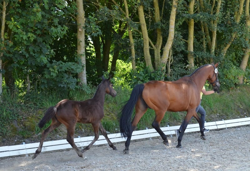 **Sales Advertisement: Oldenburg Show Jumper** For sale is a pregnant Oldenburg mare, born in 2010. With a height of 167 cm, she presents herself in an elegant brown coat. This mare comes from a distinguished breeding and impresses with her excellent jumping abilities, balanced temperament, and high fertility. The mare is currently in foal by the Celle state stallion "Valensky" and is being sold only due to the outstanding existing offspring. If you are interested or have any further questions, please feel free to contact me!