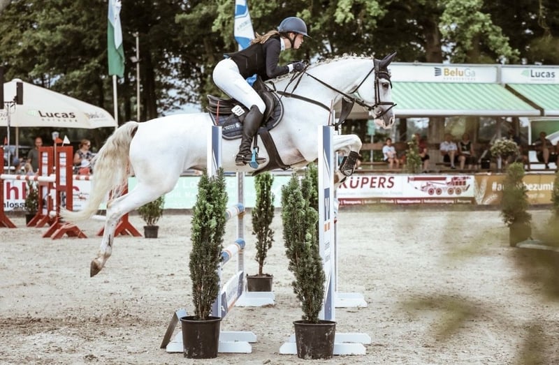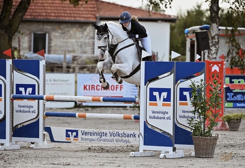 Aufgrund von Zeitmangel durchs Studium steht meine ehrgeizige Oldenburger Schimmelstute Curly Sue 168 (Calido I x Lavarino), geboren 2007, mit einem Stockmaß von ca. 1,64m zum Verkauf. Sie wurde bis S-Springen vorgestellt, bekam anschließend zwei Fohlen und hat mich danach selbst in den Springsport bis L gebracht. Gemeinsam konnten wir zahlreiche Springen gewinnen, egal ob Stil oder Zeit & Stil, teilweise mit Traumnoten von 9,0. Curly zeichnet sich durch enormen Ehrgeiz und Leistungsbereitschaft aus. Sie möchte immer alles richtig machen und zeigt im Parcours vollen Einsatz. Besonders variabel in den Galoppsprüngen, ermöglicht sie schnelle und flexible Distanzen. Sie benötigt einen Reiter mit sicherem Grundwissen und Erfahrung im Umgang mit Pferden, die „Go“ haben. Mit der nötigen Rittigkeit und Ruhe lässt sie sich jedoch schnell und zuverlässig kontrollieren. Ideal wäre eine Reiterin, die Spaß am Springen hat und Curly Sue liebevoll und sicher im Parcours arbeiten möchte oder eine erfahrene Reiterin für den Freizeitbereich. Bitte nur ernsthafte Interessenten. Proberitt ist möglich, jedoch gegen eine Gebühr von 25€, um Reittourismus zu vermeiden. Mit Curly Sue bekommt man eine leistungsstarke, motivierte Stute, die ihren Reiter zuverlässig unterstützt und Freude am Springen vermittelt.