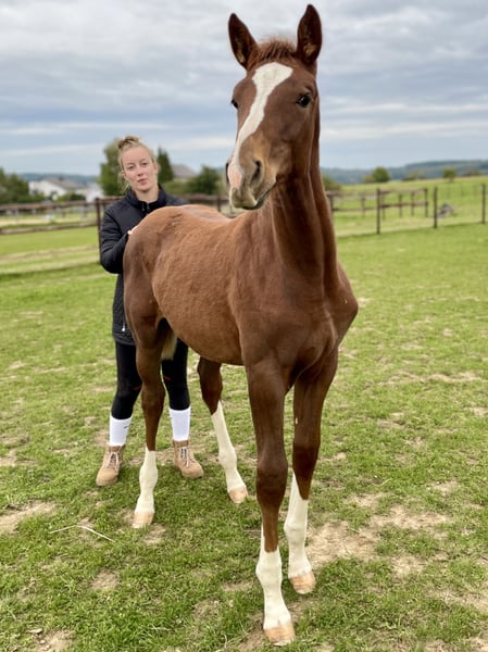 Verkaufe ein vielversprechendes Stutfohlen, abstammend von Coeur Rouge x Los Angeles, geboren im Juni 2025. „Coeuri“ überzeugt nicht nur durch Eleganz, ihre Schönheit und ihr erwartetes Endmaß von ca. 175cm, sie bringt auch einen einwandfreien Charakter mit. Mut und eine große Portion Selbstbewusstsein, sowie ihre fröhliche, offene Art zeichnen sie aus. Sie zeigt schon jetzt großes Potenzial für den Spring- oder Vielseitigkeitssport. Dank ihrer hervorragenden Abstammung und ihrer ausgeglichenen Natur ist sie ideal für ambitionierte Reiter, die eine zuverlässige und talentierte Partnerin suchen. Ein echtes Highlight für alle, die auf der Suche nach einer zukünftigen Sportlerin und Freundin sind. Coeuri wird nur in allerbeste Hände abgegeben, ich wünsche mir für sie ein Für-Immer-Zuhause mit Herz und Verstand. Sie wird nicht an Händler oder Schulbetriebe und nur nach vorherigem Kennenlernen und Besichtigung ihres neuen Zuhauses abgegeben. Nicht unter Wert. Ein zukünftiges Vorkaufsrecht ist ebenso Voraussetzung. Eine bestehende OP-Versicherung kann möglicherweise übernommen werden.