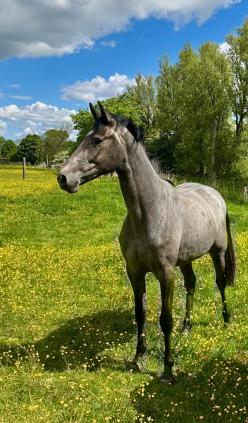 For sale is a 2023-born mare from our family-owned breeding program. The mare is a daughter of Dorian Grey, a descendant of Dominator Z, known for his elegance and technical ability. The video shows the mare during her first free jumping attempt, just a few days after she was backed. Recent X-rays are available, with no abnormalities detected. For further inquiries, please feel free to contact us by phone at: 0160-96436624.