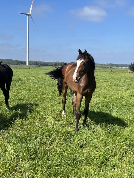Zum Verkauf steht diese 3 jährige braune Stute abstammend von Asterix de Couleur x Blockbuster x Quintender x Escudo Behutsam auf der Wiese in einer großen Stutenherde aufgewachsen und noch sehr roh. Aufgrund von Zeitmangel abzugeben.
