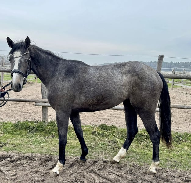 Zum Verkauf steht eine 3 jährige Stute aus eigener Zucht. Sie ist aufgeweckt und überzeugt durch ihr freundliches Wesen, braucht aber in der weiteren Ausbildung viel Zeit, Geduld und Ruhe. Aufgrund ihrer Abstammung bringt sie gute Voraussetzungen für den Sport mit und beeindruckt beim Freispringen mit Übersicht und einer guten Technik am Sprung. Bei weiteren Fragen gerne telefonisch melden unter: +49 1520 9796604
