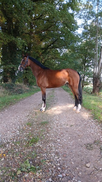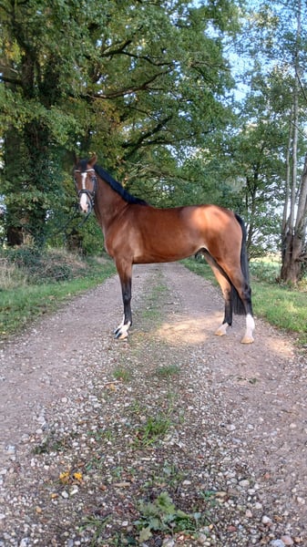Zum Verkauf steht unsere schicke 4jähr. Stute Lima aus eigener Zucht. Sie stammt von Diablue PS x Lyjanero und hat ein Stockmaß von 1,60m. Lima ist bei uns selbst ausgebildet worden, kennt Doppellongen Arbeit, Führmaschine, Halle und Außenplatz. Wurde von uns selbst jetzt auch angeritten und ist deshalb auch kein Anfänger Pferd. Durch weitere Nachzucht und durch ihre Größe müssen wir uns leider von ihr trennen und hoffen auf eine weitere gute Ausbildung im neuem Umfeld. Leider hat sie sich im Fohlenalter, an einem hinteren Fesselkopf verletzt. Sie wurde aber röntgenologisch untersucht und dabei wurden keine gesundheitlichen und sportlichen Einschränkungen festgestellt. Ein nur äußerlicher Schönheitsfehler. Bei Interesse geben wir gerne weitere Informationen und Bilder weiter. Bitte unter der Nummer: 01728040169