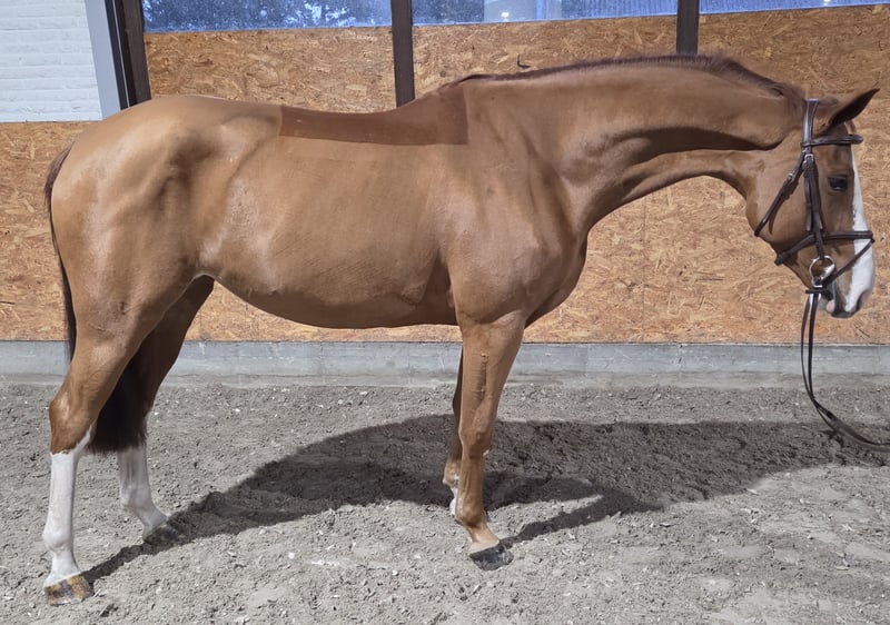 Carola, at just 4 years old, is already very confident and fearless. She is ready for show jumping and can be competed with in the near future. She is already comfortable riding alone in the open field with children. Thanks to her excellent rideability and gentle nature, this mare is also an attractive option for the ambitious recreational rider. Excellent X-ray images are available.