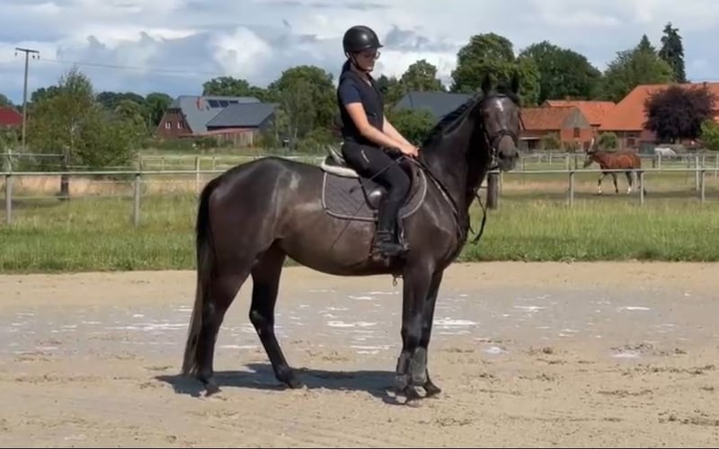 From our own breeding, we offer a stunning, very trainable mare who impresses with her excellent attitude. She has a great jumping manner, is cautious, and already shows impressive balance for her young age. She is very honest, calm, and very straightforward. Her dam has already produced successful offspring up to class S. The mare has been radiographed – images are available for viewing. If interested, please feel free to contact us at 0174/2020310.