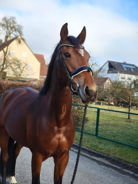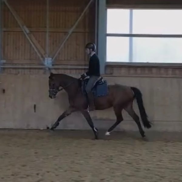 Zum Verkauf steht eine braune talentierte Jungstute von Chaplin x Valentino, welche jetzt bereit ist in ein neues Zuhause zu ziehen und weiter gefördert werden kann. Charakterlich ist die junge Stute, welche im März vier Jahre alt wird, einwandfrei. Sie wird in allen drei Grundgangarten geritten, wobei sie alles super mitmacht. Der Vater Chaplin ist selber ein hocherfolgreiches Springpferd unter Martin Fuchs mit zahlreichen Siegen auf 5 Sterne NIveau, darunter ein Weltcup Finalsieg, sowie drei Global Champion Tour Siege. Der Muttervater Valentino hat 50 Platzierungen und Siege bis zur schweren Klasse 3 Sterne S. Die Mutter Victoria`s Secret war selber in der Klasse M Springen erfolgreich, Vater Valentino / Pluspunkt /Pilot. Charakterlich ist die Stute Valentina einwandfrei, regelmäßig entrumt, geimpft und dem Hufschmied vorgestellt. Seid einer Woche wurden kleine Sprünge unter dem Sattel absolviert, wobei Valentina einen sehr guten Zug gegen das Hindernis zeigte. Sie bemüht sich sehr dem Reiter alles richtig zu machen. Jetzt ist sie bereit in fördernde Hände zu gehen. Ein Probereiten ist jederzeit möglich.