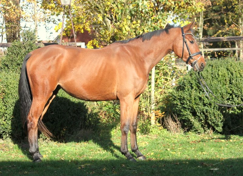 Cassada ist eine 4-jährige vielversprechende Nachwuchsstute aus dem Springpferdezuchtverband Oldenburg International. Sie ist unter besten Bedingungen aufgewachsen und unglaublich brav, sanft und umgänglich für ihr Alter. Cassada ist noch roh und stammt väterlicherseits ab von einem nicht gekörten Hengst des Casino Berlin/Berlioz (Mutter Bilitis B V/H Juxschot Z war international erfolgreich unter Jonella Ligresti (ITA)). Ihre Mutter (von Con Air/Corrado/Deeadly Nightshade XX) war bis 6-jährig im Sport, selbst bis zur Klasse M** erfolgreich und hat bereits mehrere erfolgreiche Nachkommen bis 1,45m. Hier bekommen Sie ein ehrliches Rohjuwel für Reiter, die einen Youngster nach eigenen Vorstellungen ausbilden und fördern möchten. Ein sehr guter Röntgen-TÜV aus 10/2025 liegt vor Leider leidet Cassada unter einem leichten Sommerekzem, das jedoch mit einer Ekzemerdecke gut in den Griff zu bekommen ist. Daher ist der Verkaufspreis entsprechend günstig angesetzt. Bei Interesse und weiteren Fragen stehe ich gerne zur Verfügung. Ein Besichtigungstermin ist nach Vereinbarung möglich.