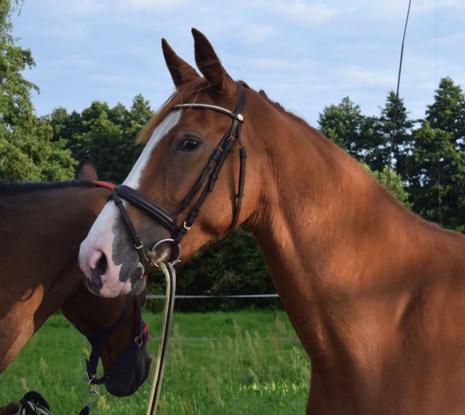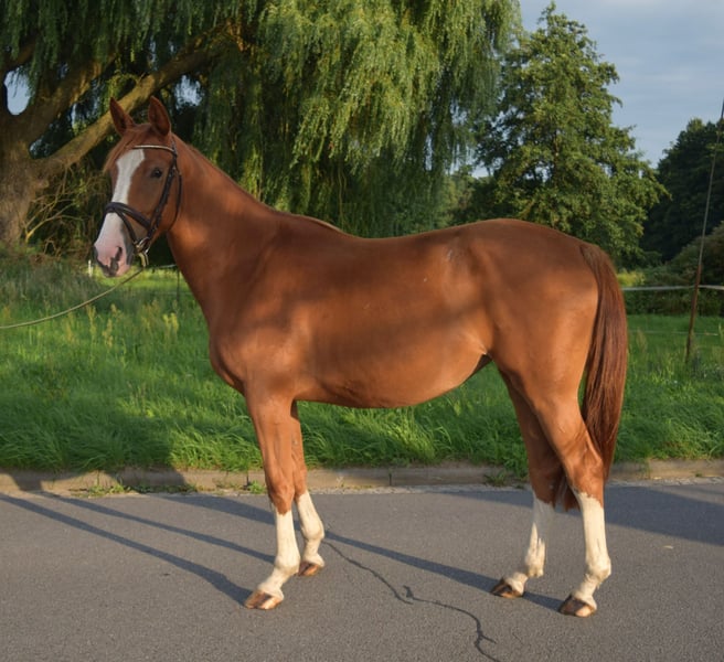 For sale: a beautiful Oldenburg show jumping mare We are offering a well-built 3-year-old Oldenburg show jumping mare with an excellent temperament. She impresses with her attractive appearance and promising jumping qualities. With a height of 170 cm, she is the perfect size for ambitious riders. Her sire, Maverik, was bred in France and is now 7 years old. He successfully competes up to 1.25 m in sport under Dennis Johannson. His dam, Pristanna, competed internationally in show jumping with Daniel Deußer up to class S**** and has produced six successful international jumpers via embryo transfer, including Zantana Z by Zandor Z, ridden by Alberto Torzi (Italy). From his Dutch dam line NL-Merrielljn 214, numerous show jumpers and dressage horses have been bred. Grandfather (dam's sire): Vivant van de Heffinck has been one of the top international show jumping stallions for years, consistently impressive with his strength, attitude, agility, ability, and superb technique. This highly modern stallion was one of the top horses worldwide in 2010 with Australian rider Chris Chugg. In 2011, he competed successfully in Nations Cups under Katharina Offel and, at 17 years old, was successful at the European Championships in Aachen in 2015 with Cassio Rivetti (UKR). Vivant has a highly interesting outcross pedigree. His sire, Fuego du Prelet, from the Almé Z line, was successful in 1.60 m international show jumping under Dirk Demeersman. The Holsteiner dam sire Landino, by Landgraf I-Roman, also competed successfully for many years under Belgian rider Ludo Philippaerts. Hedjaz, in third generation, is also the dam sire of Otterongo, the Olympic competitor from Sydney 2000, and Sapphire, ridden by McLain Ward (USA), one of the most successful show jumpers of recent years. X-ray images available. If you are interested or require further information, please feel free to contact me. Viewings and test rides possible by arrangement.