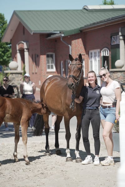 For sale is a very charming and versatile mare with the lineage Casiro I – Quintender. The mare comes directly from the breeder, is healthy, and has been raised appropriately in a herd environment. She was already awarded as an elite foal at the foal show. In 2025, she had a graded foal and has since been carefully and age-appropriately started under saddle. Special attention was paid to giving her plenty of time—incorporating many breaks and allowing her to progress at her own pace. From the beginning, she has proven to be an absolute star pupil: eager to learn, uncomplicated, and very rideable. She is now also ridden confidently by less experienced riders. Her sire, Casiro I, is known for his versatile genetics and produces particularly rideable, brave, and characterful horses that are well-suited for amateur riders while also exhibiting excellent movement. This mare embodies these qualities perfectly: obedient, uncomplicated, pleasant to ride, and full of joy in work. I see her as an ideal ladies' riding horse, a good transition horse, or a reliable all-rounder that is enjoyable both in daily training and in the field or at first competitions. Please feel free to contact me if interested. More information, videos, or an introduction are available at any time. (The last three pictures show the mare as a foal.)