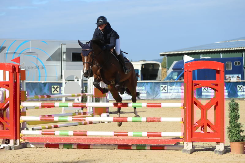 Betty is a five-year-old mare with excellent bloodlines and a fantastic attitude over fences. She has consistently impressed with her positive mindset and motivation for sport and jumping. So far, she has competed mainly at select events, as she was still a foal at four years old. In her previous performances, she has always achieved clear rounds and good placings. She is eager to learn and cooperative at all times. We are very pleased with her positive development and are confident that she still has a lot of untapped potential. I am only selling her for private reasons. Please feel free to contact me with any questions. Phone: +49 1578 83 18 647