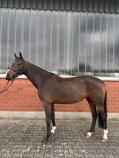 For sale is a 5-year-old, homebred mare by Bentley van de Heffinck out of Lord Pezi. Her dam was successfully competed internationally up to 1.45 m. Broke at four and gently trained, she is gaining her first competition experience and placings in show jumping A-classes at the age of five. The mare is easy to ride, has excellent basic gaits, and is very well-behaved in handling. Please feel free to contact me for more information or any questions. Email: muellerlouisa@gmx.de WhatsApp: +49 151 16126663