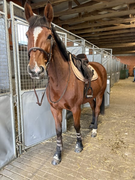Mam na sprzedaż piękną klacz oldenburska (Quinaro x Quick Star) 6lat, 163cm Startowała na poziomie 110 aktualnie w treningu przygotowywuje się na więcej Bezproblemowa w obejściu, bez narowów. Po więcej informacji zapraszam na priv. Możliwa negocjacja ceny po obejrzeniu. I'm selling a beautiful Oldenburg mare (Quinaro x Quick Star). 6 years old, 163 cm tall. She competed at level 110 and is currently training for her next competitions. Easy to handle, no faults. For more information, please send me a private message. Price is negotiable after viewing.