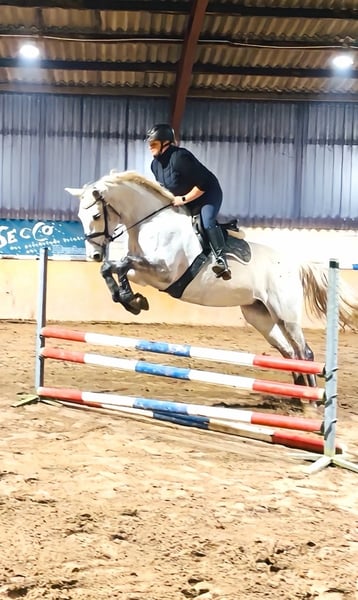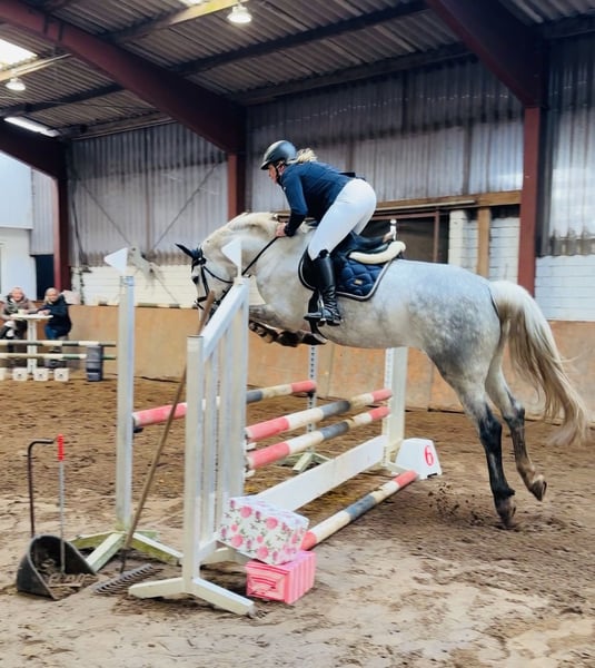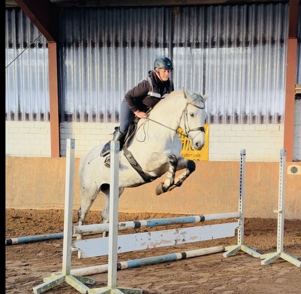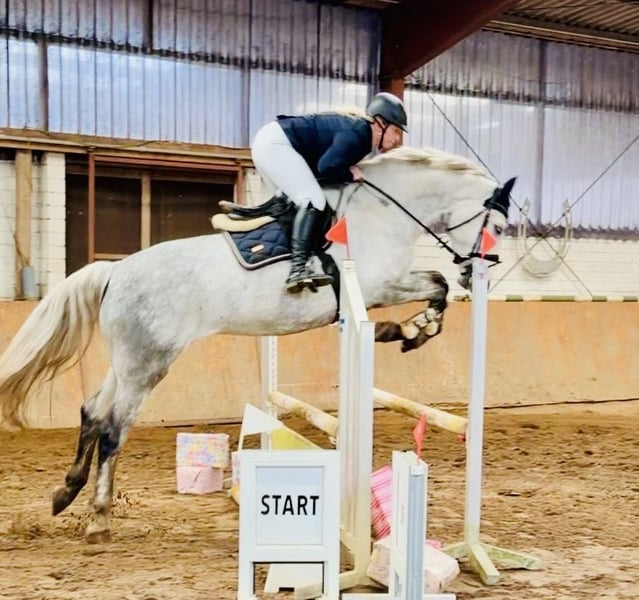 Tolle 6-jährige Stute zu verkaufen. Parcourfertig sowie unter Turnierbedingungen bereits Parcour gegangen. Stockmaß ca. 167 cm. Kräftig gebaut, deckt auch größere Reiter ab. Absolut brav im Umgang und bei der Arbeit. Kein Selbstläufer, möchte geritten werden. Regelmäßig geimpft und entwurmt. Schmiede- und verladefromm. Die Stute ist derzeit 4x beschlagen. Für das Probereiten nehmen wir eine Gebühr von 30,00 €, die beim Kauf natürlich verrechnet wird. Eine aktuelle AKU liegt noch nicht vor.