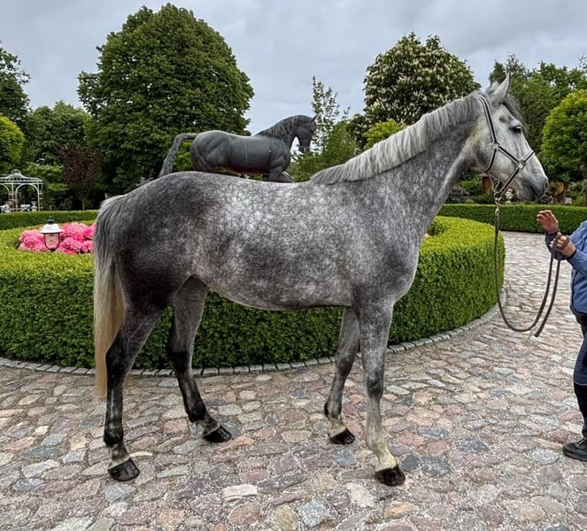 Chardonnay eine jetzt 6 jährige Stute von Cellestial - Canoso, sie ist unverbraucht, nicht angeritten, sie hat Shivering im linken Hinterbein zeigt. (Video auf Anfrage) Sie ist aktuell tragend von Tornado SH OLD ( Toulon x Diamant de Semilly x Voltaire ), und hatte bereits 2024 ein sehrt gutes Hengstfohlen von TornadoSH OLD. Ihr Vollbruder Corfield ein gekörter 6 jähriger Hengst er ist Seriensieger in Springpferdeprüfungen bis zur Klasse M, er läuft aktuell in den USA erfolgreich als Hunter. Bei weiteren Fragen, Videos oder der Hilfe beim Transport kontaktieren sie uns gern.