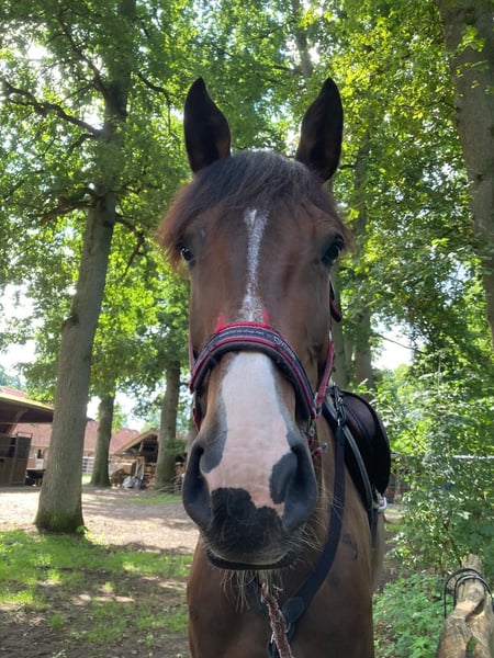 Zum Verkauf steht eine elegante Oldenburger Stute mit viel Potenzial, geboren in 2019. Mit ihrem Stockmaß von 178 cm präsentiert sie sich als imposantes, harmonisch proportioniertes Pferd. Die dunkelbraune Stute überzeugt durch ihre Ausgeglichenheit. Bälle, Schlitten oder wackelnde Schaumstoffstangen bringen sie nicht aus der Ruhe sondern erregen Interesse bei ihr. Das Voltigieren mit ihr wurde bereits getestet, wobei sie sich stets absolut brav und kooperativ zeigte. Dabei spiegelt sich ihre Lernbereitschaft, ihr gutes Gleichgewicht und ihre Flexibilität wider. Die Stute ist freundlich und sehr menschenbezogen. Sie ist für ambitionierte Voltigierer, die eine vielseitige und talentierte Partnerin suchen, bestens geeignet. Aufgrund ihrer hervorragenden Abstammung ist die Stute auch für die Zucht äußerst interessant. Für weitere Informationen und einen Besichtigungstermin stehe ich gerne zur Verfügung.