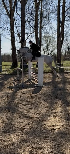 Wunderschöne und rittige Oldenburger Stute mit TOP Abstammung sucht sportliches Zuhause. Unsere schöne, bald 8 jährige Oldenburger Stute mit bester Abstammung (Presley Boy, viele internationale TOP-Pferde im Pedigree) ein neues Zuhause wo sie gefördert wird. 1.65 cm Sie ist aus bester Springabstammung, selber nach zweijähriger Pause bis L springen gestartet. Bisher platziert und siegreich in A und L - Springpferde. Im Training lief sie schon vereinzelt M-Sprünge. Sie springt alles, egal aus welcher Situation! Absolut nicht glotzig und souverän, egal in welcher Umgebung oder auf dem Turnier. Auch in der Dressur sehr schön zu reiten. Jedoch ist dies nicht unser Schwerpunkt. Geht problemlos und sicher alleine oder in der Gruppe ins Gelände. Auf der Koppel sehr sozial und immer freundlich. Rundum ein absolutes Traumpferd. Sie bringt großes Potenzial für den hohen Springsport mit, jedoch matched es einfach nicht zwischen mir und ihr. Darum darf sie mit jemanden anderem Schleifen sammeln. AKU kann auf Kosten des Käufers gemacht werden. Vorerkrankungen sind keinerlei bekannt. Osteo war im Februar da, regelmäßig entwurmt und alle Impfungen aktuell. KEIN Anfängerpferd, sie möchte korrekt geritten werden. Kein zur Verfügung, keine Raten. Bei schneller Abwicklung noch VB