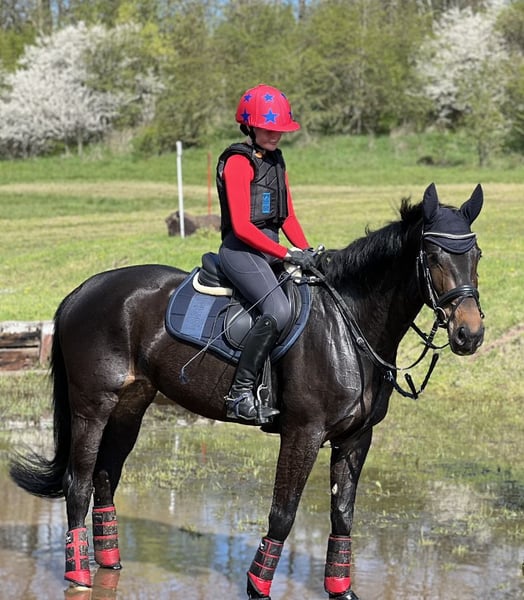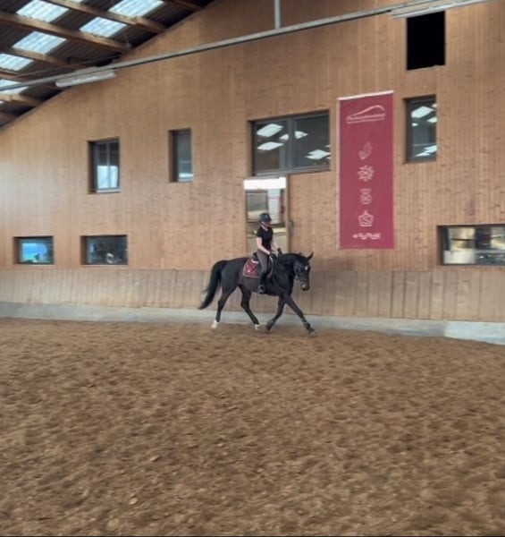 With a heavy heart, we are looking for a new home for our Philine (Arkansas x Polydor). We purchased her directly from the breeder as a 4-year-old, and she has been with us for nearly 6 years now. My daughter has already competed with her successfully up to A-level classes, has shown her over fixed jumps, and has spent plenty of time riding her in the countryside. Philine loves hacking out and simply relaxing. She always approaches these rides bravely and with enthusiasm; she’s not the type to refuse or shy away. She is familiar with cows, sheep, chickens, cars, tractors, and even the ICE train—pretty much everything you find in a rural environment. In handling and daily work, she is gentle and eager to please. She has a good, willing attitude, but we would still prefer an experienced rider for her, as she can be quite lively in the field. It is very important to us that she goes to a 5-star home with daily turnout. The price is negotiable if the conditions are right! She currently spends the summer months in a herd of four other mares in an open stable, and in winter, she is turned out during the day and stays in a paddock box at night. Philine is always well-behaved at the vet and farrier, has been regularly vaccinated and dewormed, and her teeth were recently floated. All equipment can be purchased additionally upon request. Unfortunately, due to my A-level exams and subsequent university studies, we simply cannot give her the time and attention she deserves anymore. Therefore, we are looking for a new 5-star home where she will be loved just as much as she is with us. If Philine has caught your interest, please feel free to contact us via WhatsApp at +49 15159880222. We can also send videos upon request.
