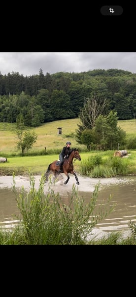 Verkaufe meine 8-jährige sportliche und leistungsbereite Stute von Asagao xx x Carnando. 🐎 Sie ist ca 1,64m groß. In Jungpferdeprüfungen der Klasse A platziert in allen drei Sparten. Standort 97843 Neuhütten Preis 15-20.000€ VHB 🥕